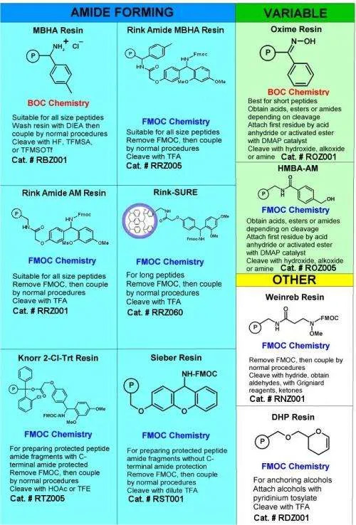 树脂种类的选择在合成多肽的过程中是至关重要的,尤其在进行多肽合成的条件优化的时候,可以很简单地通过改变树脂的种类来进行条件优化,反而会更容易得到长链肽。