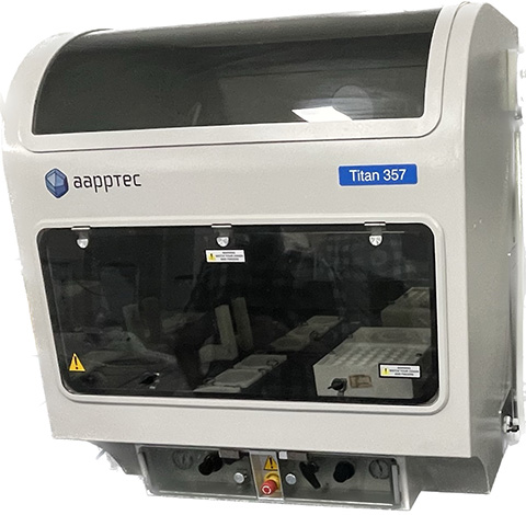 Titan 357 全自动多肽合成仪采用双机械臂设计,一个机械臂用于精确地输送氨基酸和试剂;