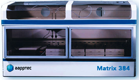 MATRIX 384是美国AAPPTEC(爱谱肽客)公司在创新研发的全自动化的超高通量多肽和有机合成仪。MATRIX 384 可以同时合成384 个不同的化合物,快速高效地制备平行库。四个独立的96孔井反应器模块支持在不同温度、反应时间和混合速度同时优化肽库合成。每个反应器模块分为四个单独的区域,用以进一步分离区别合成操作和反应条件。